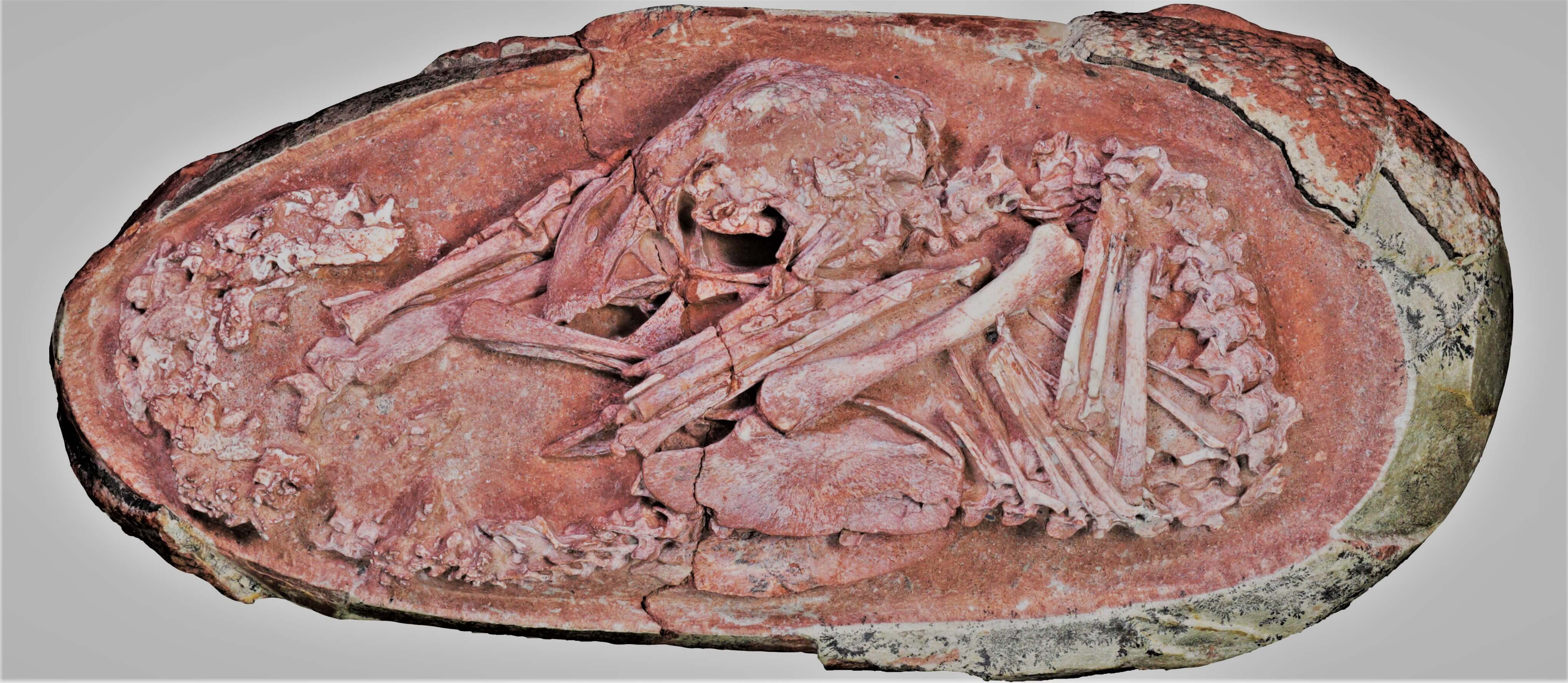 The dinosaur would be roughly 10.6 inches (27 centimeters) long, according to the experts. The egg measures 6.7 inches (17 cm) long, indicating how much the organism was folded over.